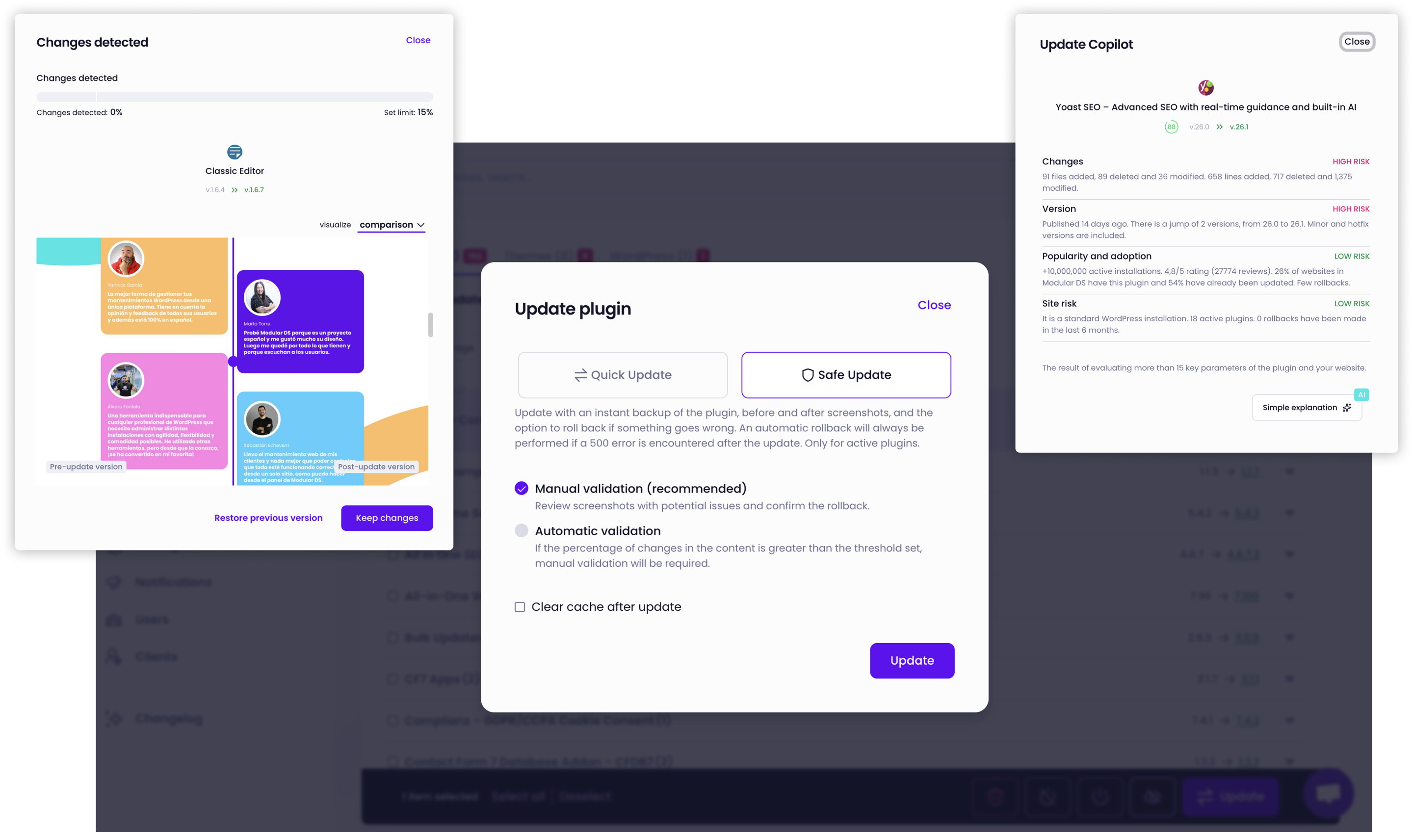 See a full record of all updates, whether made through Modular DS or directly in WordPress, to stay in control and quickly trace any issue.
