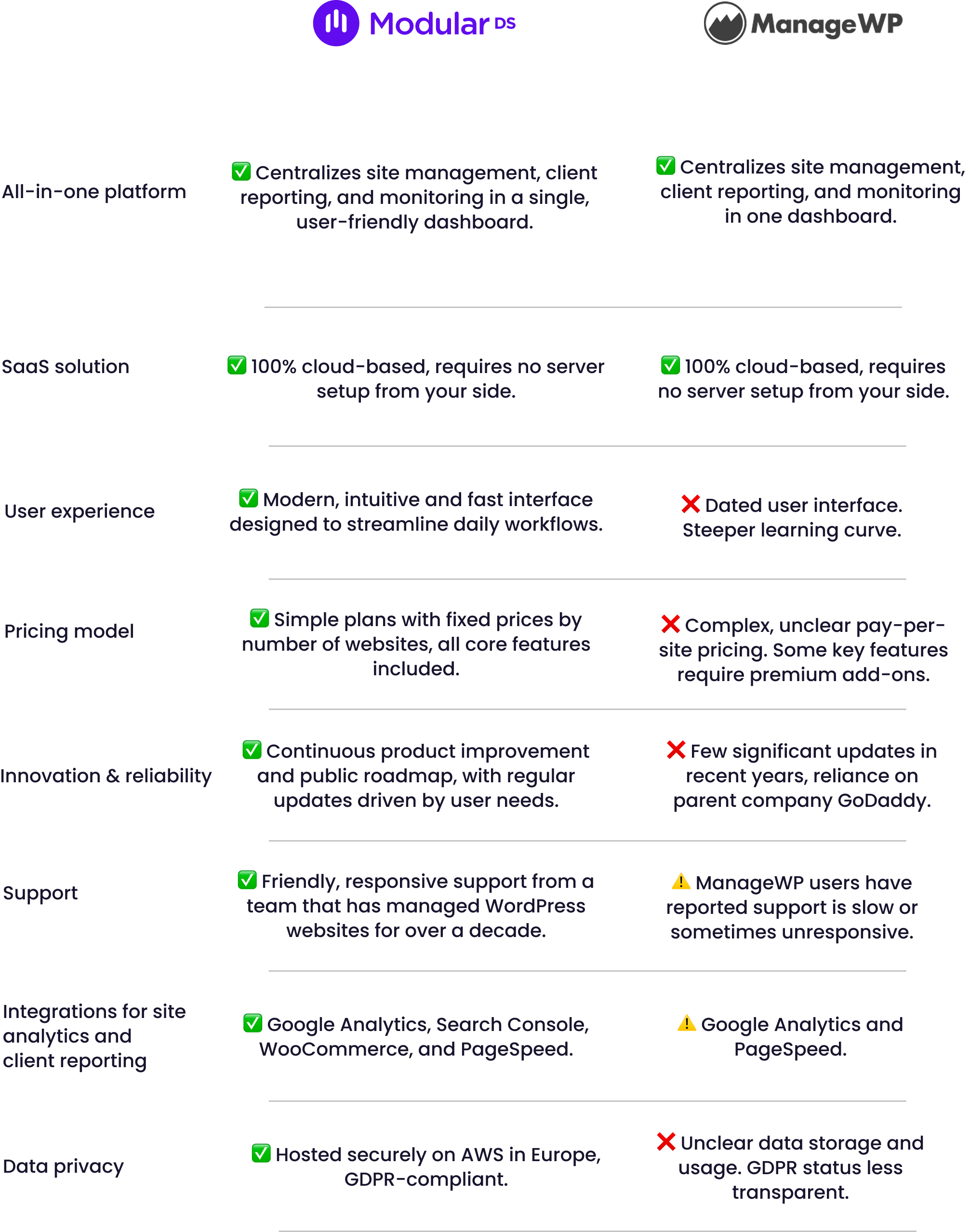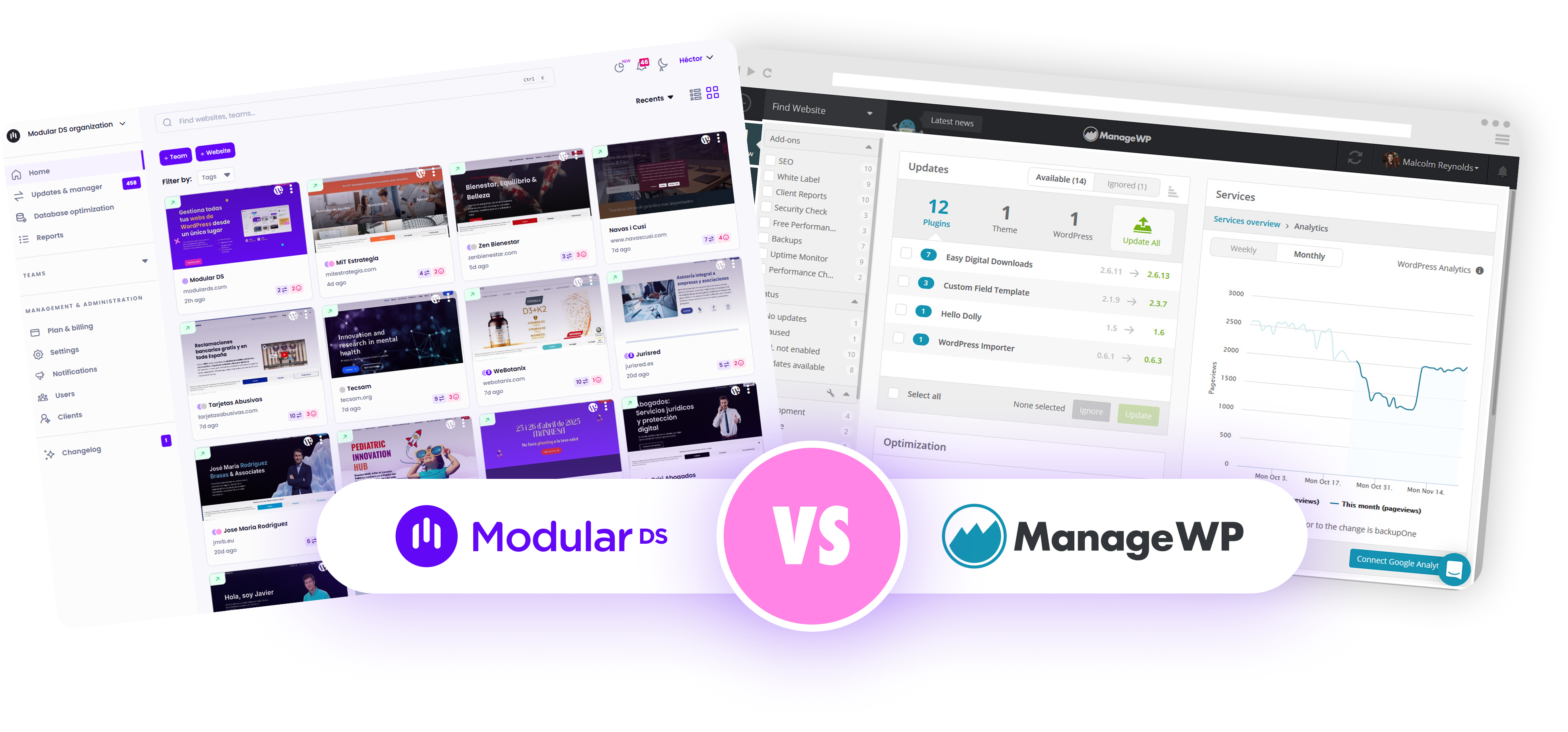 Modular DS vs. ManageWP: Key differences at a glance