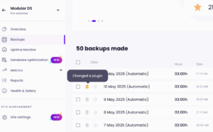With Modular DS 2.0, you can also see a full history of all updates made to your websites, including those done directly through WordPress.