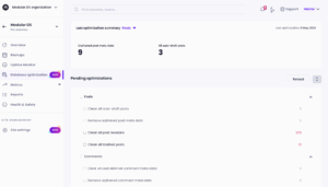 Easily clean up post revisions, spam comments, transients, orphaned tables, and more —up to 11 different database optimizations— directly from your Modular DS dashboard. No need for extra plugins.