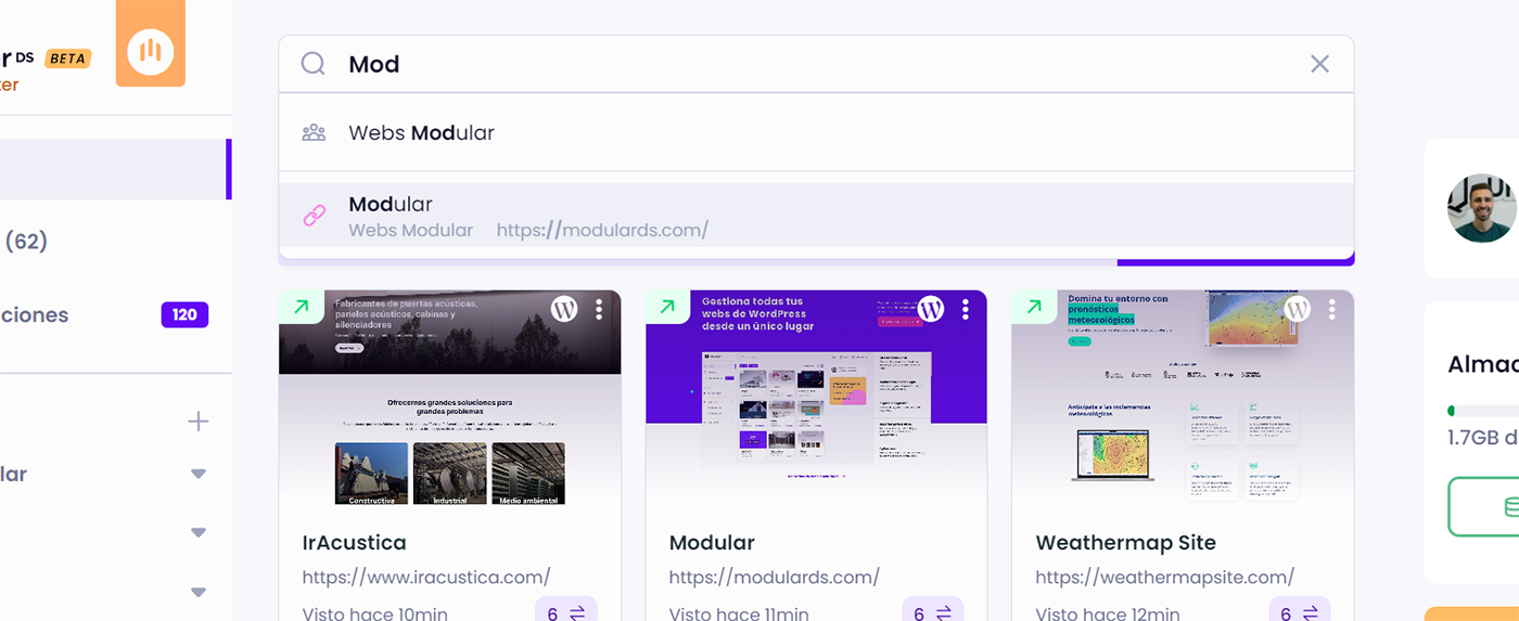 Finding things among all your websites in Modular can be challenging, right? We have the solution. We’ve added a search bar that allows you to quickly locate and access any site or team.