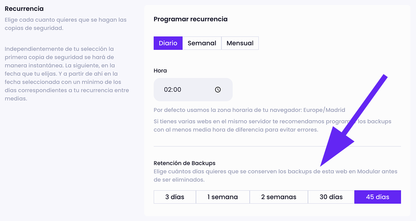 As you know, with PRO plans, you can create weekly, daily, or even instant backups. Now you can choose how many days they are kept to avoid unnecessary backup accumulation.
