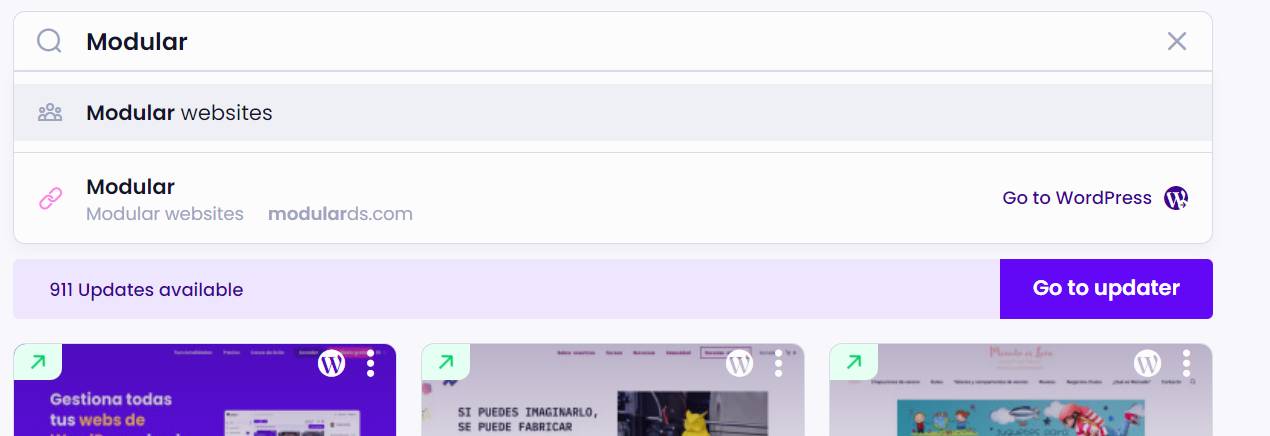 When you search for a website within the general Modular search engine, a button will appear to log in directly to the WordPress panel.