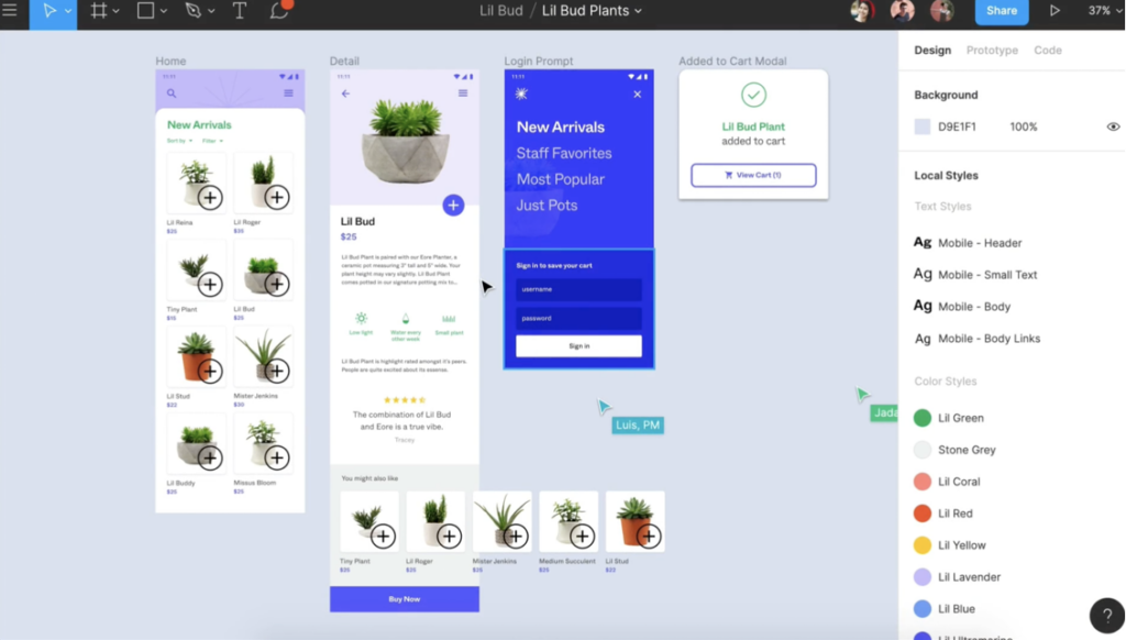 - Accessibility from anywhere: Being a web-based tool, Figma can be accessed from any device with internet access. This is especially useful for remote teams or for presentations to clients in different locations.